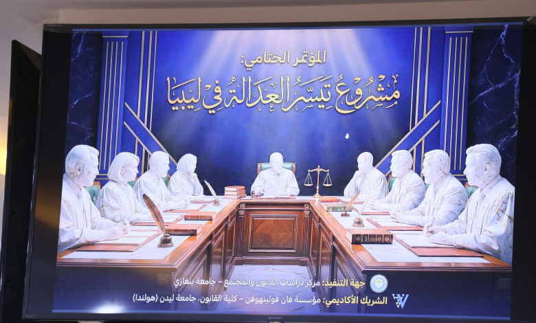 استضافة المعهد العالي للقضاء للمؤتمر الختامي لمشروع “تيسّر العدالة في ليبيا”.
